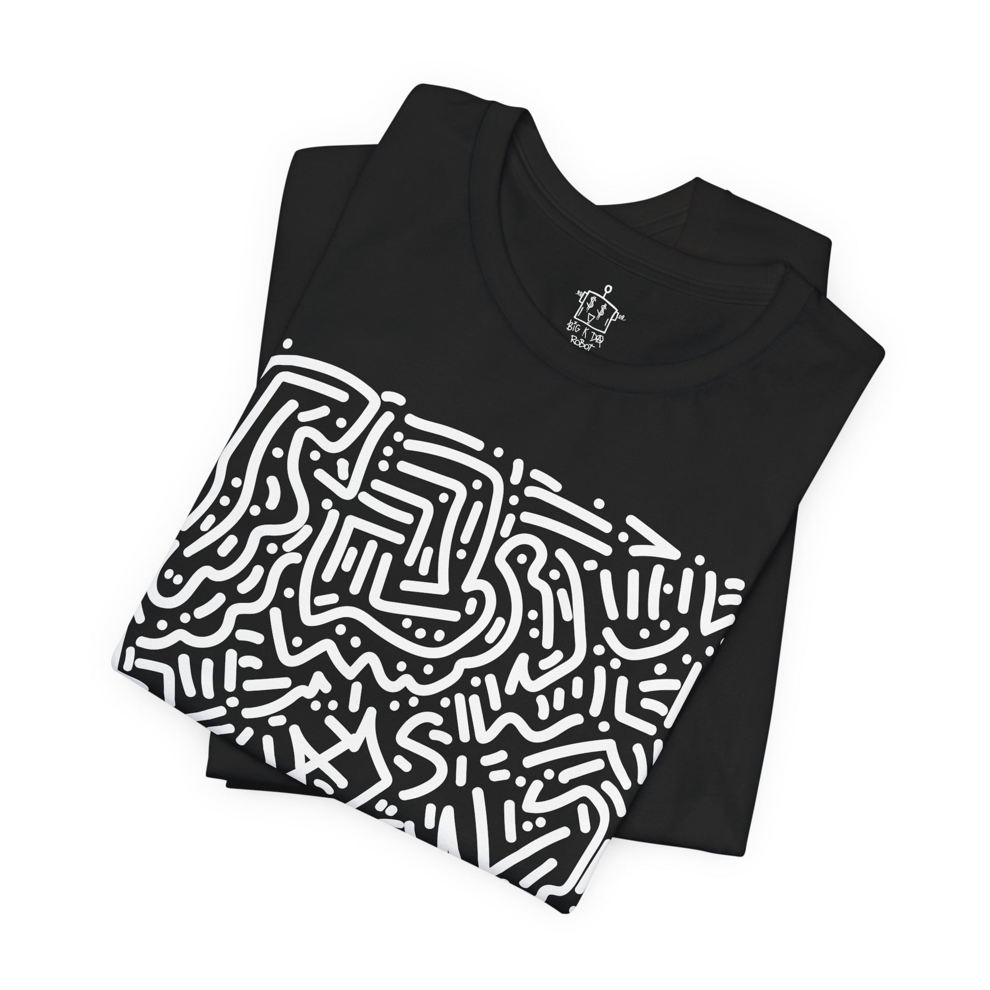 This black t-shirt features a unique and abstract style that blends bold lines and intricate patterns, making it a standout piece for anyone who appreciates modern art and urban fashion. Always Grateful is BIG K's Motto.